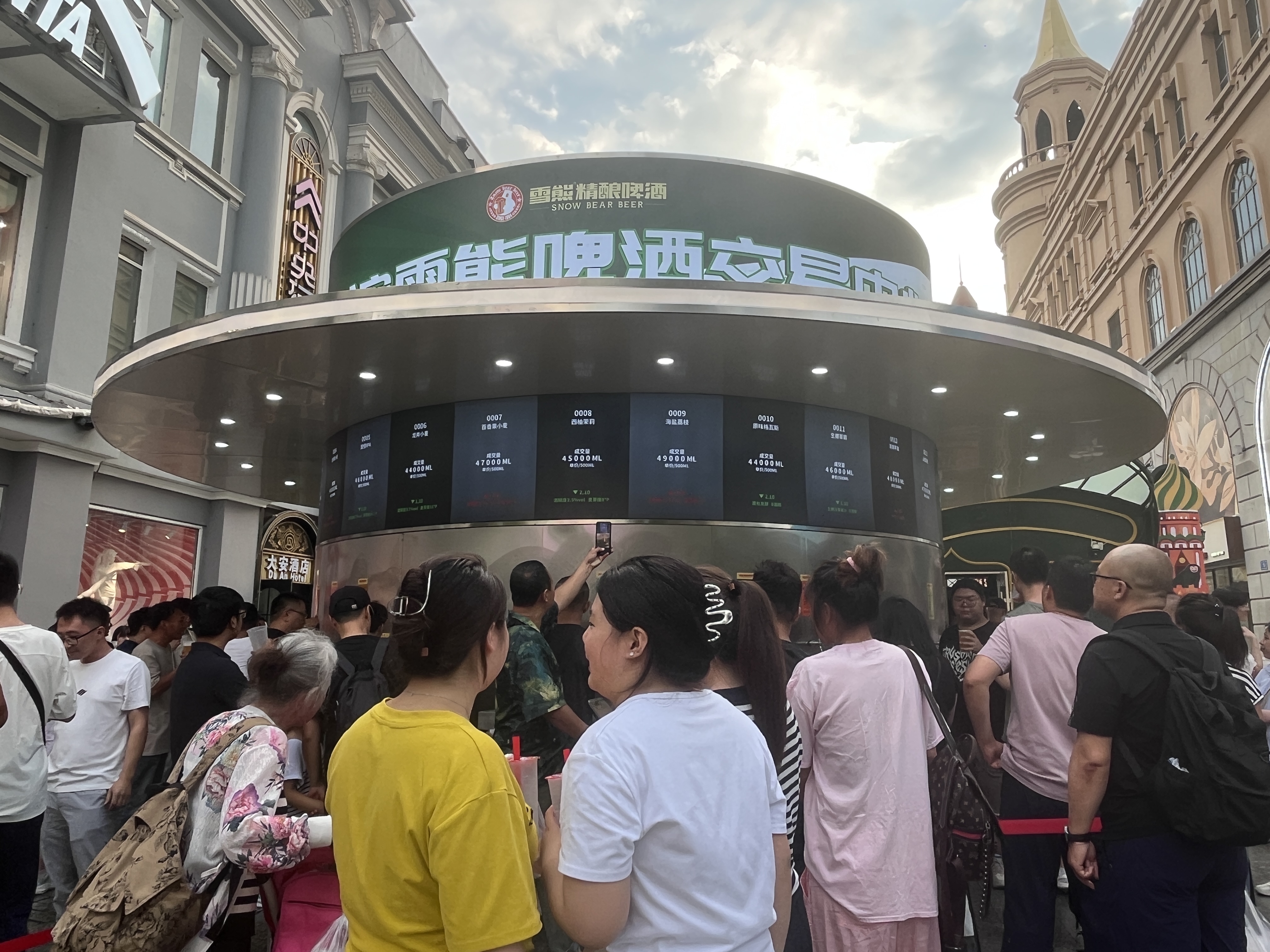 “项目8月初才启动,时间虽晚,但日均2000杯的销量已远超预期。”中央大街雪熊啤酒交易中心项目负责人张健表示,盈利并非当前首要目标,更重要的是通过这种高曝光度的体验,迅速打开品牌知名度,并为哈尔滨文旅产业“添砖加瓦”。“13.9元的价格非常亲民,我们承诺不会涨价。甚至一家人共享一杯都可以,核心就是让更多人尝到哈尔滨本地的精酿啤酒。游客品尝到喜欢的啤酒也可线上下单,购买雪熊对应的啤酒类别”。