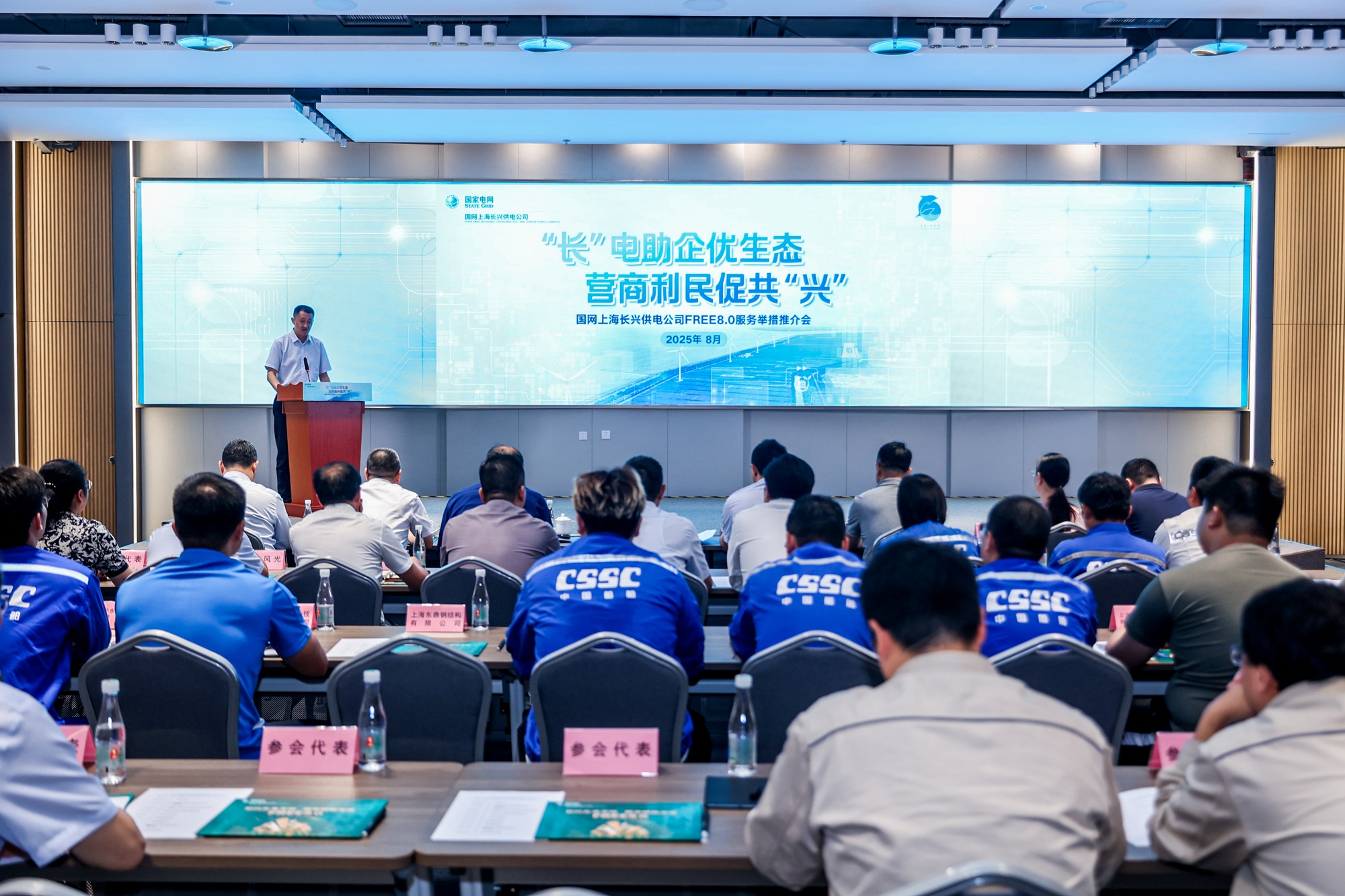 2025年8月15日,“‘长’电助企优生态,营商利民促共‘兴’”——国网上海长兴供电公司优化电力营商环境FREE8.0服务举措推介会在沪举行。会上,国网上海长兴供电公司介绍了最新升级发布的FREE8.0“五项新承诺+五类服务包”及15项长兴特色办电举措。