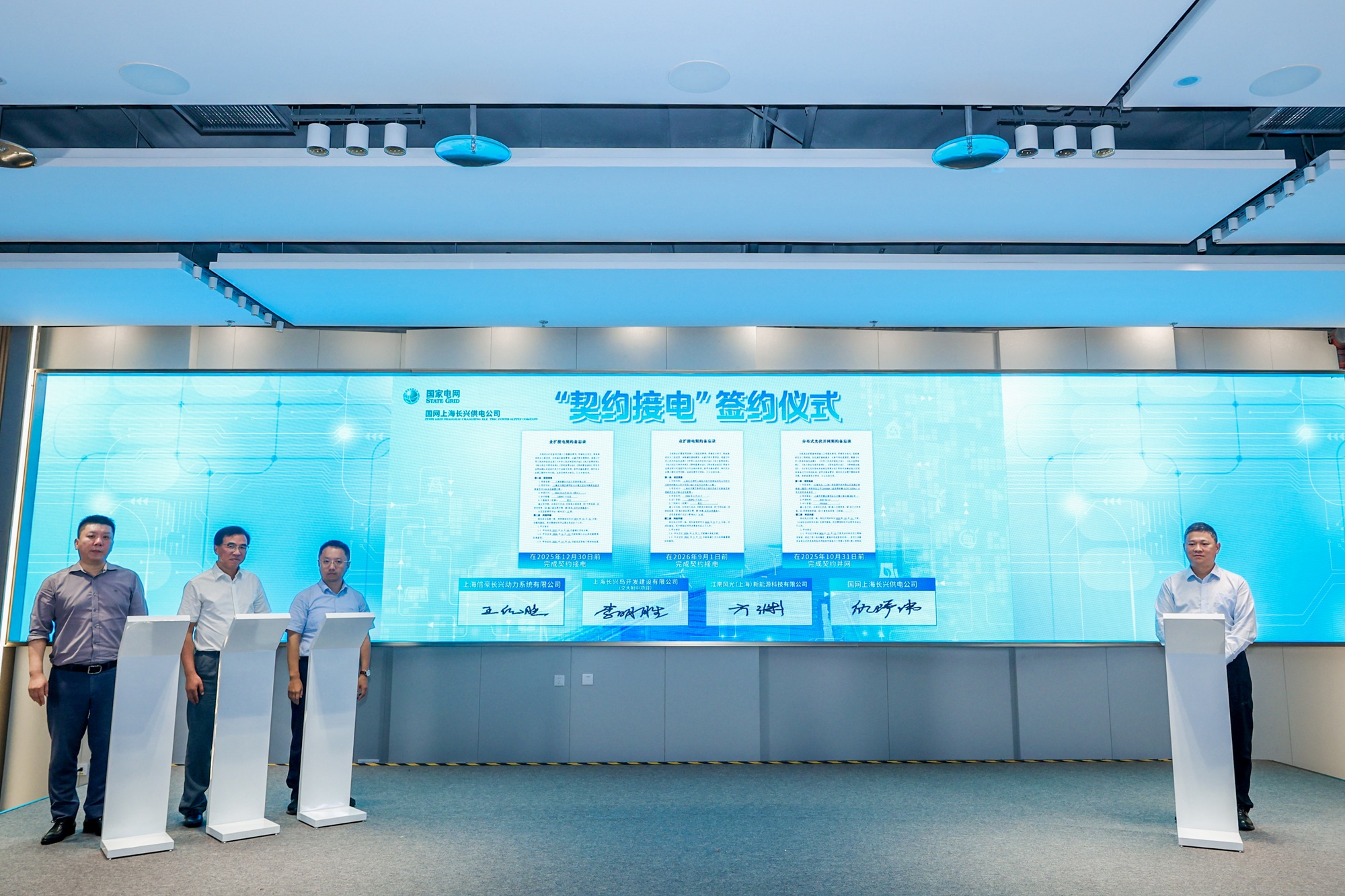 活动现场,国网上海长兴供电公司与企业代表进行契约接电服务签约,以契约形式确定服务内容、接电期限、双方协作责任,确保“早接电、接好电”。