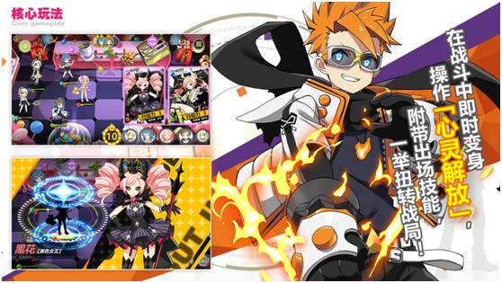游戏玩法:这里的“心灵解放”也就是一般意义上的变身,变身后的能力、技能都会有相应变化,另外还有即时轮盘换动对位,游戏比较强调策略性。同时,还设计了换装和好友交互系统。而玩家也可以通过给角色赠送礼物和互动来增加好感度,角色的心情和好感也将给游戏体验带来一定加成或影响。