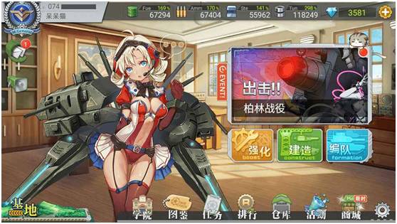 游戏玩法:获得战车的主要方式有建造、掉落(俗称打捞)、升级奖励、通关活动等。其中建造和掉落是最主要的方式。在出击时,每当战队以 A 及以上的评价获胜,都有机会获得一辆新坦克。完成特定任务或攻略特定关卡后,系统也会赠送给玩家坦克。另外还有好感度系统,当角色好感度达到5级,玩家将有机会和角色结婚。