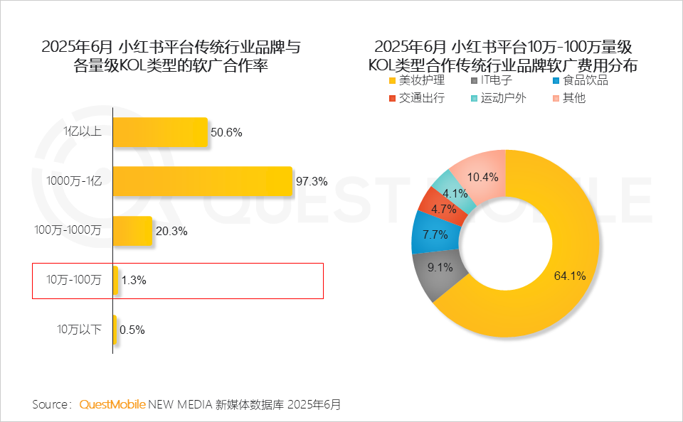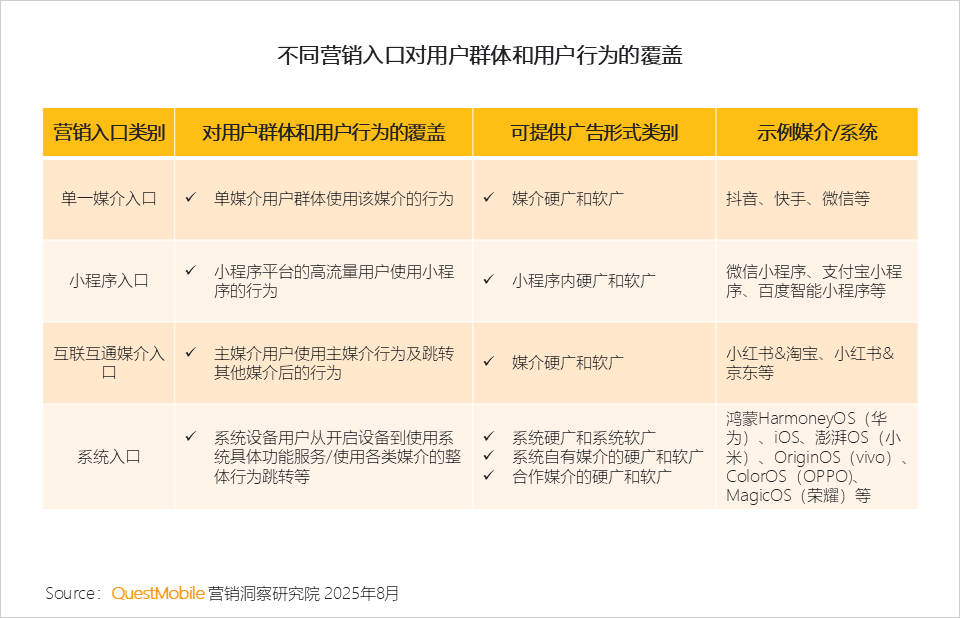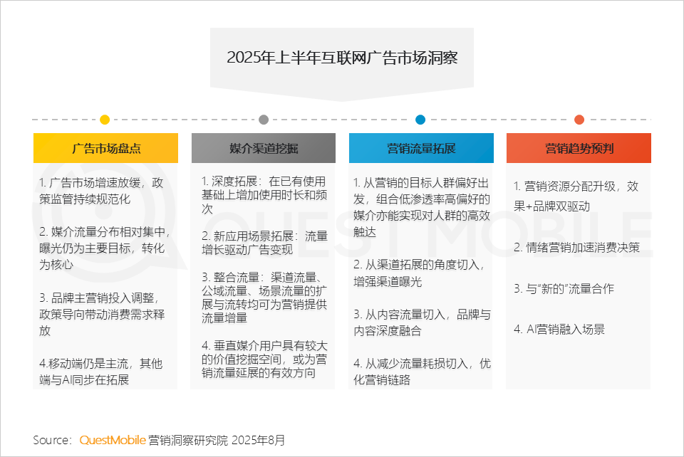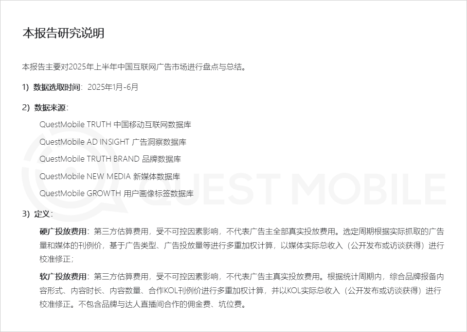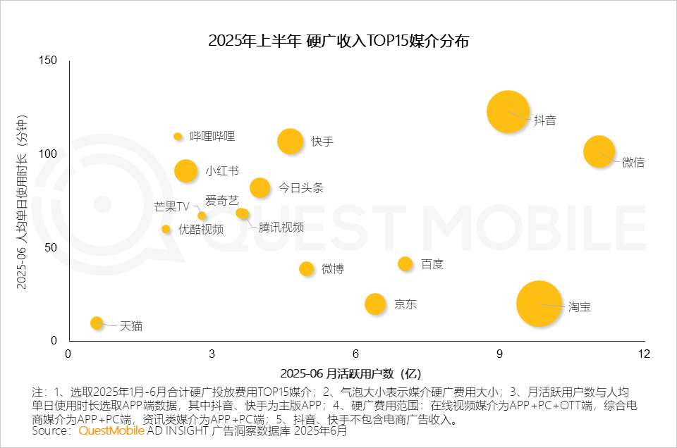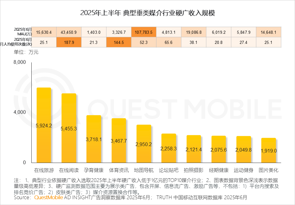 QuestMobile数据显示,2025年上半年,美妆护理、家用电器、运动户外等行业将超过50%的硬广费用投放在渠道类媒介。
