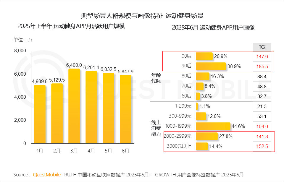以运动健身场景为例,该场景具有典型的关联用户线下地理位置的特征,同时关联健身装备消费、餐饮消费、保健品消费等需求,并且该场景保持千万级的人群规模,人群具有年轻、高消费能力的特征,是相关行业营销的有效入口。