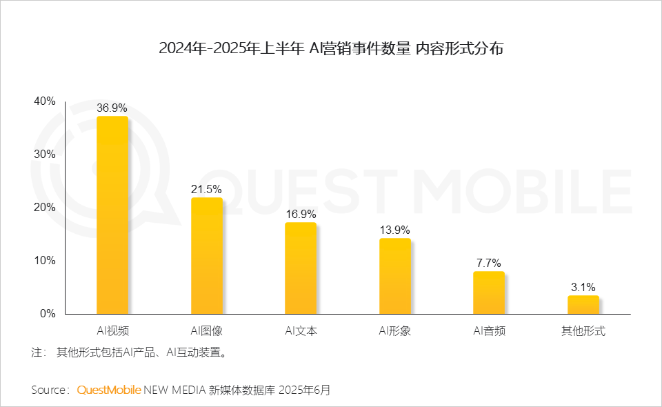 通过AI与现实品牌相结合,利用技术优势实现高效互动与情感共鸣。AI营销形式多样,且不断创新,在当下品牌营销事件中,多结合于AI视频、图像文本、虚拟形象的广泛应用。
