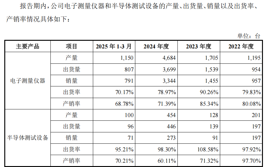 当前公司产销率并未满负荷运转,其电子测试仪器出货率多在70%至80%之间,产销率多在60%至80%之间。半导体测试设备的出货率虽然较高,多在90%以上,但产销率为60%至70%。