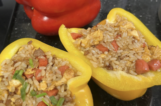 这边刚把彩椒掏空塞满,那边就迫不及待拍照打卡喊:关晓彤,你的兵来了。