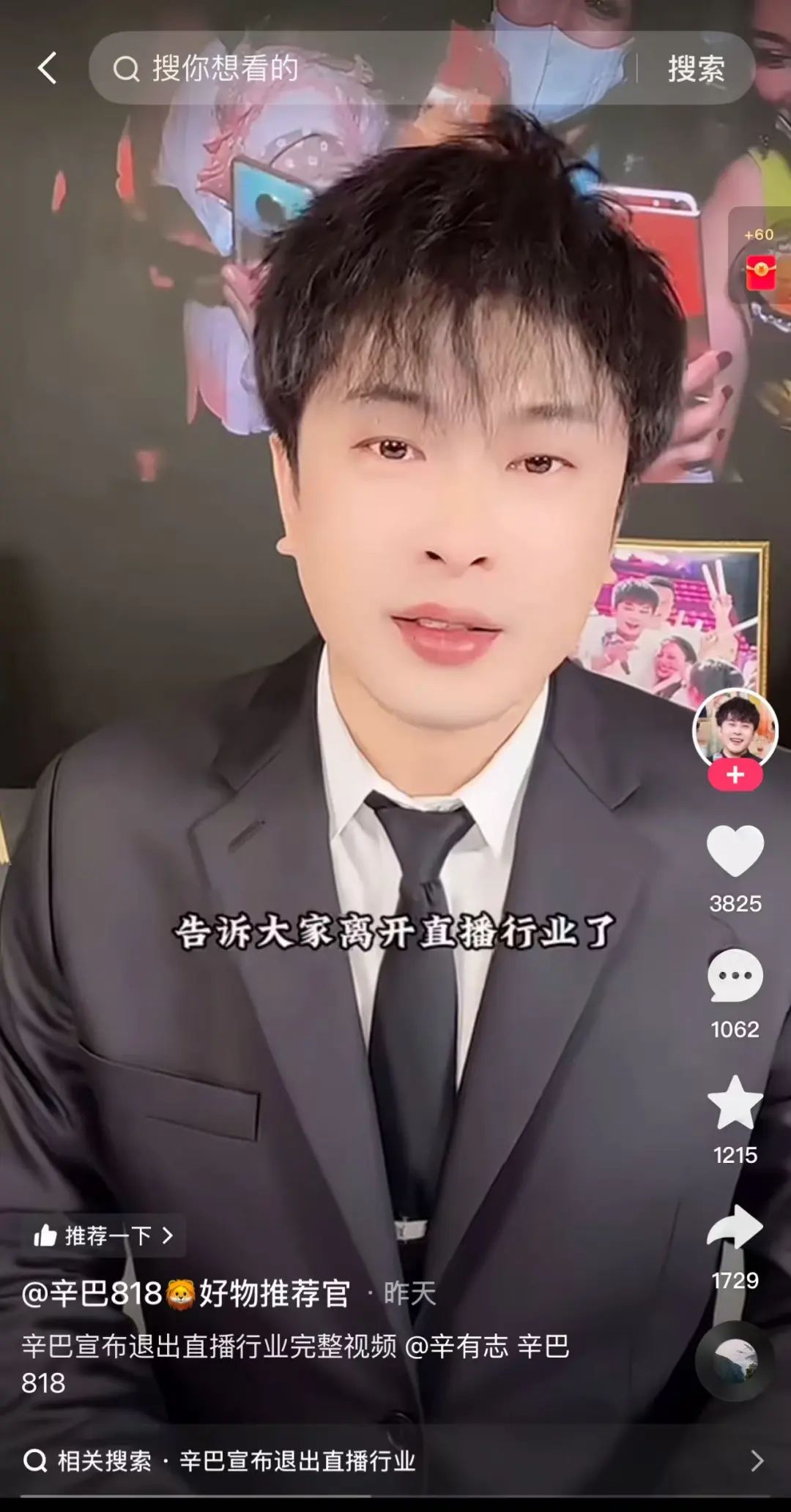 对于这一次的退网,辛巴解释是健康原因,并透露了身体状况的细节:“我在24岁的时候检查出来有支气管炎,31岁检查出来有肺气肿和肺大疱,32、33岁的时候我就已经觉得自己直播很吃力,本人的身体已经没有能力再去承载一个直播。”