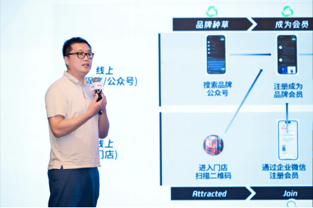 聚焦微信生态长效增长,腾讯智慧零售解决方案总监曹超云从生态视角进行了主题分享。他表示,微信生态内的电商交易规模正在快速增长,全域经营正在重构人货场的关系,腾讯生态产品可多维助力品牌生意增长。具体而言,“公私域一盘棋,线上线下一张网”的全域经营模式依托微信生态的小程序、视频号、企微等产品矩阵,实现公私域客流、信息流、服务流的无缝连接互通;小程序生态的“云店模式”,将渠道、门店、用户均数字化,可实现线上线下的统一管理。