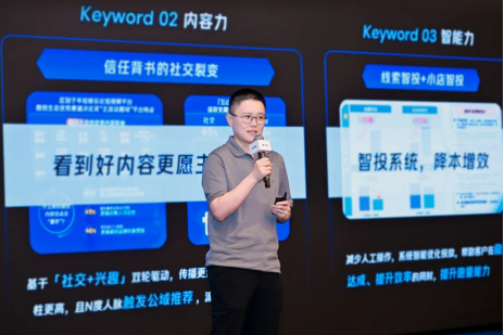 腾讯广告地产家装行业中心负责人沈昱琪从行业数据出发,透过家装家居行业营收规模、全屋定制头部上市公司销售费用等数据,提出行业企稳信号明显,市场变化催化行业营销方式发生结构性调整。其一是人群洞察升级,基于高价值范围探索策略,系统模型基于广告主向表达重点的区域或高价值人群洞察,智能探索优质区域,提升流量和销售转化;其二是信任背书的社交裂变,基于「社交+兴趣」双轮驱动,传播更丝滑,通过N度人脉触发公域推荐 ,流量洞察效率更高 ;其三是线索智投+小店智投,帮助客户在稳定达成、提升效率的同时,提升跑量能力。