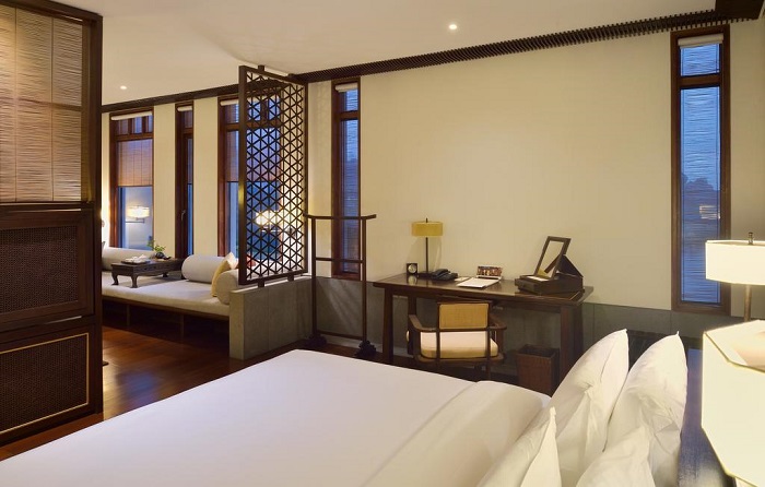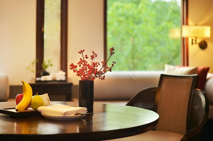 富春山居的主设计就是丹尼斯顿的负责人,比利时籍设计师 Jean Michel Gathy,他擅长将简约的建筑与周围的自然环境融合,并且是安缦的御用设计师。负责室内设计的则是传奇印尼籍设计师 Jaya Ibrahim,同样也是安缦御用,中国的颐和安缦、杭州安缦法云以及上海璞丽酒店都是他的作品,出自他手的酒店都有带有他个人特色的古典优雅,包括富春山居度假村,这几间酒店都是业内公认的设计范本。Jaya 的黄金搭档 Nathan Thompson 则负责灯光设计,他操刀的光影打在 Jaya 的设计上,演绎出低调内敛、明暗有致,他非常懂得如何衬托出 Jaya 想要表达的禅意。