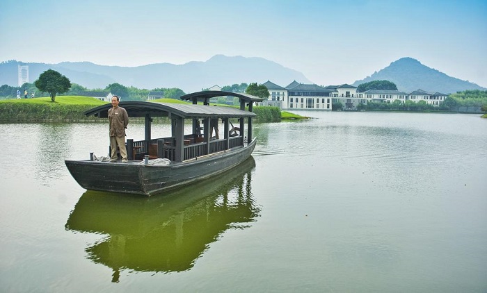 度假村位于杭州市的富阳区,距离杭州大约 40 分钟车程,临富春江而建,栖于翠绿山丘间。而元代四大家之一黄公望的那幅《富春山居图》所画的正是度假村所处的位置。说到这里不得不服酒店的主创团队,耗时八年,斥资一亿美金,一点点将这幅国宝级的画作还原,亲自身处其中时,从不少细节都能看出团队的匠人情怀。