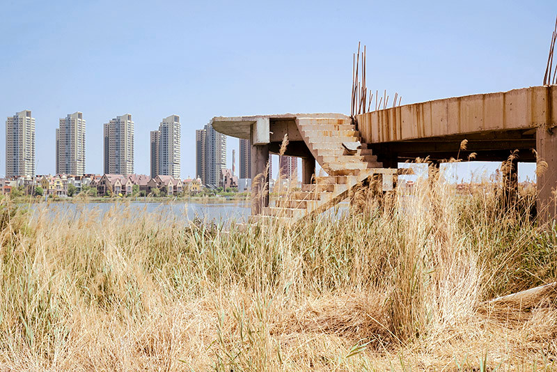 今天站在这里,依稀还能从仿造长城设计的城墙、青砖洋房和圆顶别墅中看出开发者曾经的心血。但四处荒置的楼宇,裸露在外的钢筋水泥以及被雨水淹没的地下广场却在不断诉说着它所经历的命运——“中国人的世界”早已成为幻想。