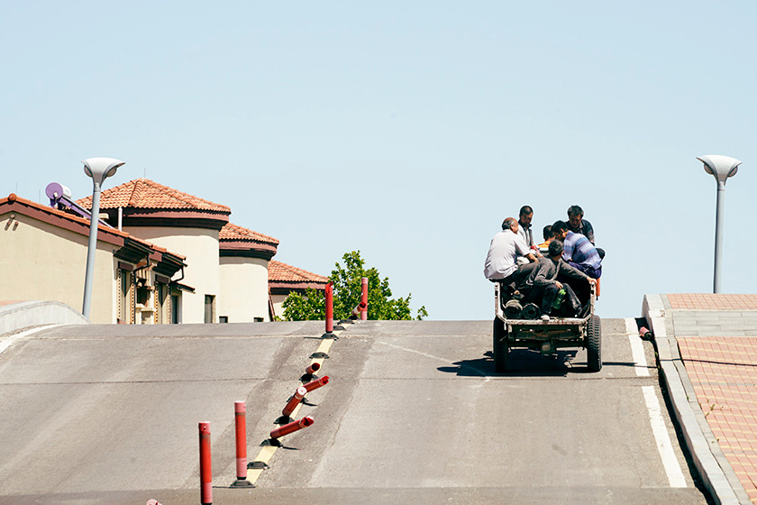 而在不远处仿造长城的一段围墙后面,另一伙人明显找到了更好的野餐位置——他们把帐篷支在高尔夫球场的发球台下,那里又阴凉,又宽敞。