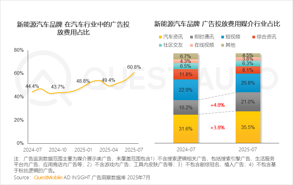 1、新能源汽车品牌的广告营销费用已高于燃油车,且预算主要投放于汽车资讯与微信平台,并显示出更加集中的趋势