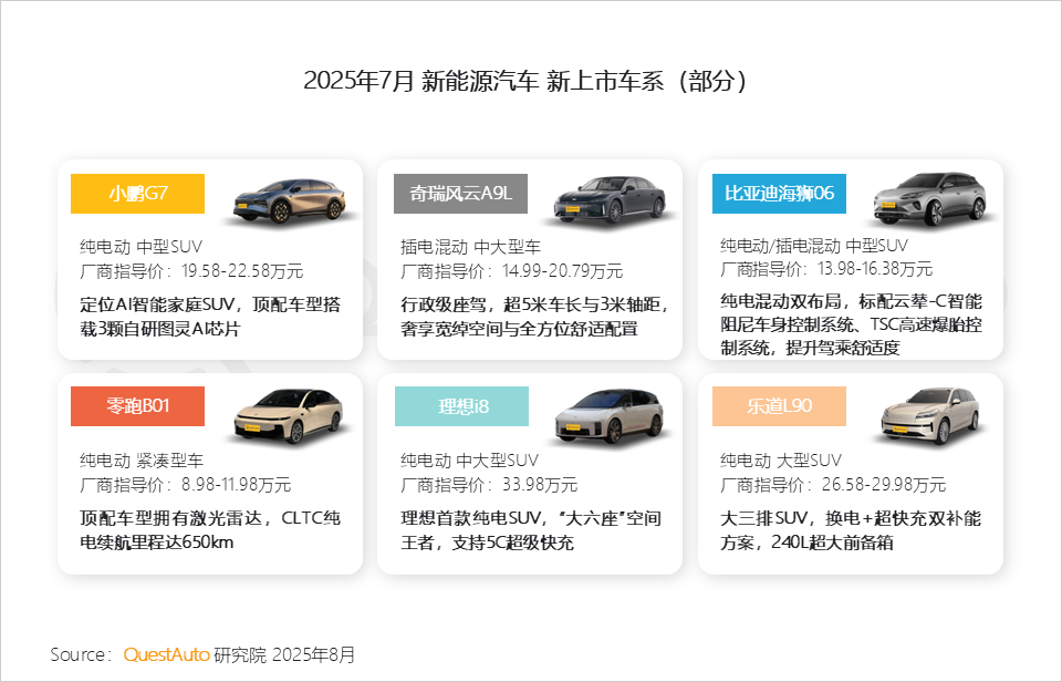 4、7月上市新车以纯电动与大空间为主,契合市场对空间实用性与经济性的需求