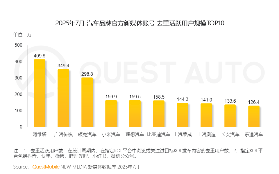 2、借助官方新媒体高效发布核心信息,已成为行业标配,TOP10汽车品牌官方号的活跃用户规模均超百万