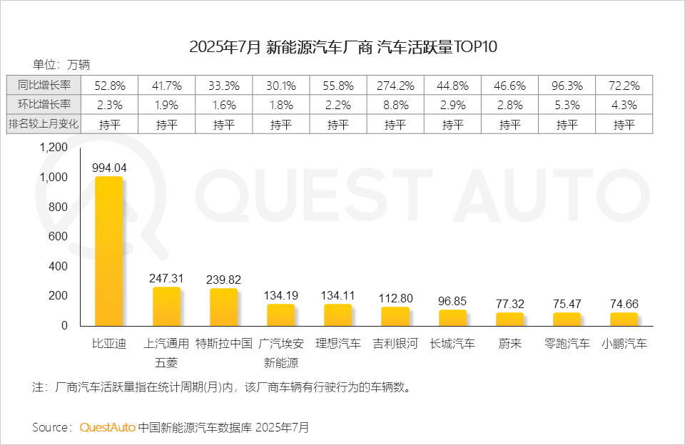 1、新能源厂商活跃量TOP榜