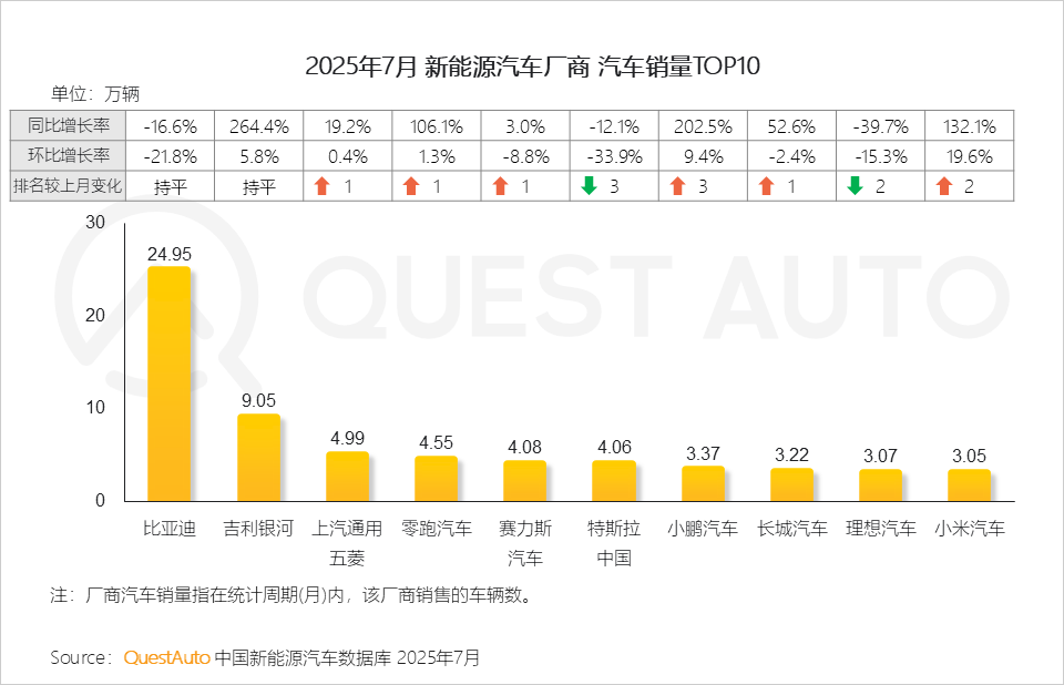 五、2025年7月新能源汽车榜单