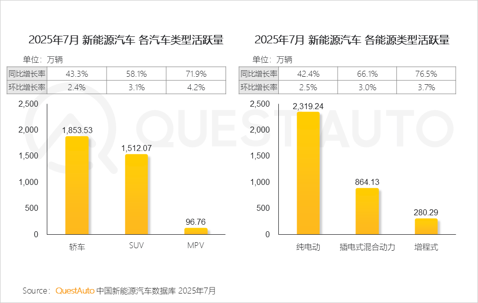 6、纯电动汽车活跃量超过2300万辆,插电混动车型达到860万辆,增程式汽车即将突破300万辆