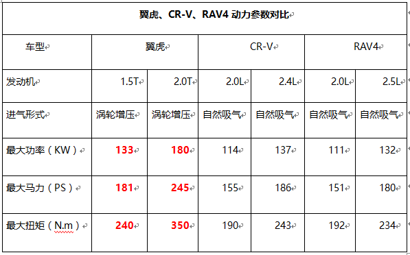 动力:翼虎迅猛有力且省油CR-V、RAV4不温不火、偏舒适