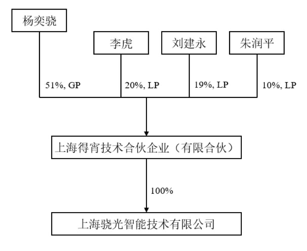 资料显示,骁光智能成立于2025年8月6日,注册资本2亿元,由上海得宵技术合伙企业(有限合伙)(以下简称“得宵技术”)100%持股,杨奕骁持有得宵技术51%合伙份额并担任其执行事务合伙人。