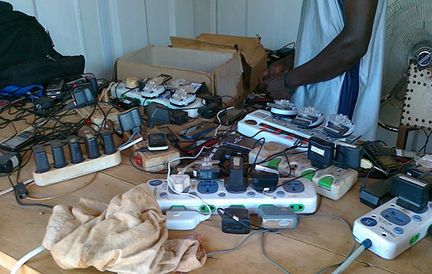 在非洲,给手机充电是一项价格不菲的服务。充满一个手机需要2块钱,够我们给手机充上好几个月了。