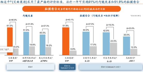 疗效与安全性兼顾:艾曲莫德长期治疗耐受性和安全性良好,尤其治疗一年可实现61%的内镜改善和51.9%的黏膜愈合;