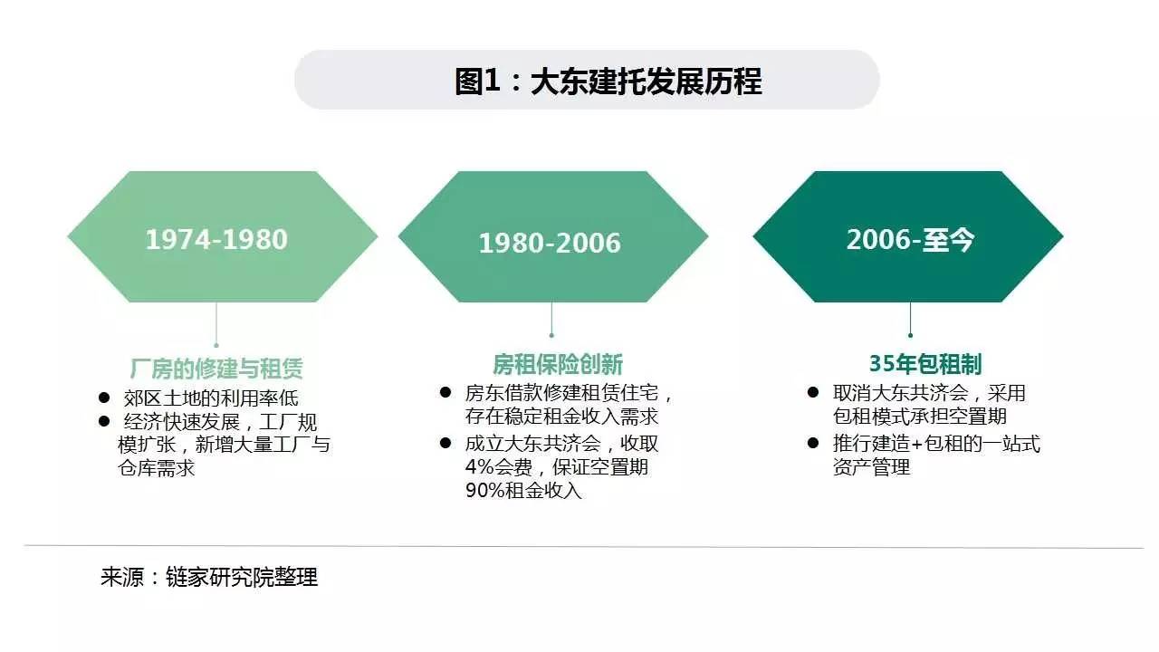 大东建托创建于1974年的名古屋市,正处于资产管理行业的形成阶段。此时期日本郊外有大量未充分开发的土地,土地主无暇也无心顾及土地开发,另一方面工厂规模快速扩大,产生大量租赁厂房、仓库的需求。