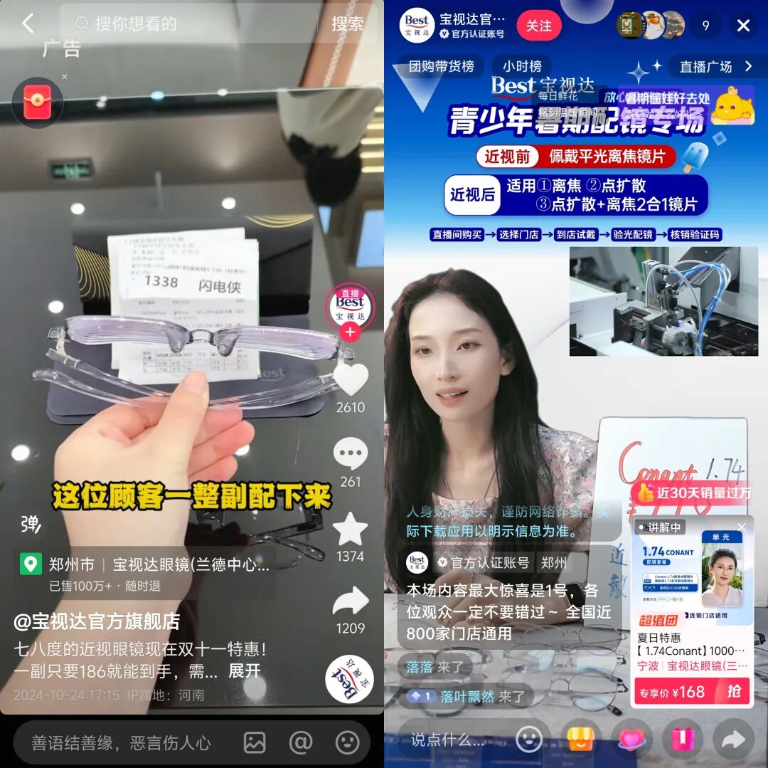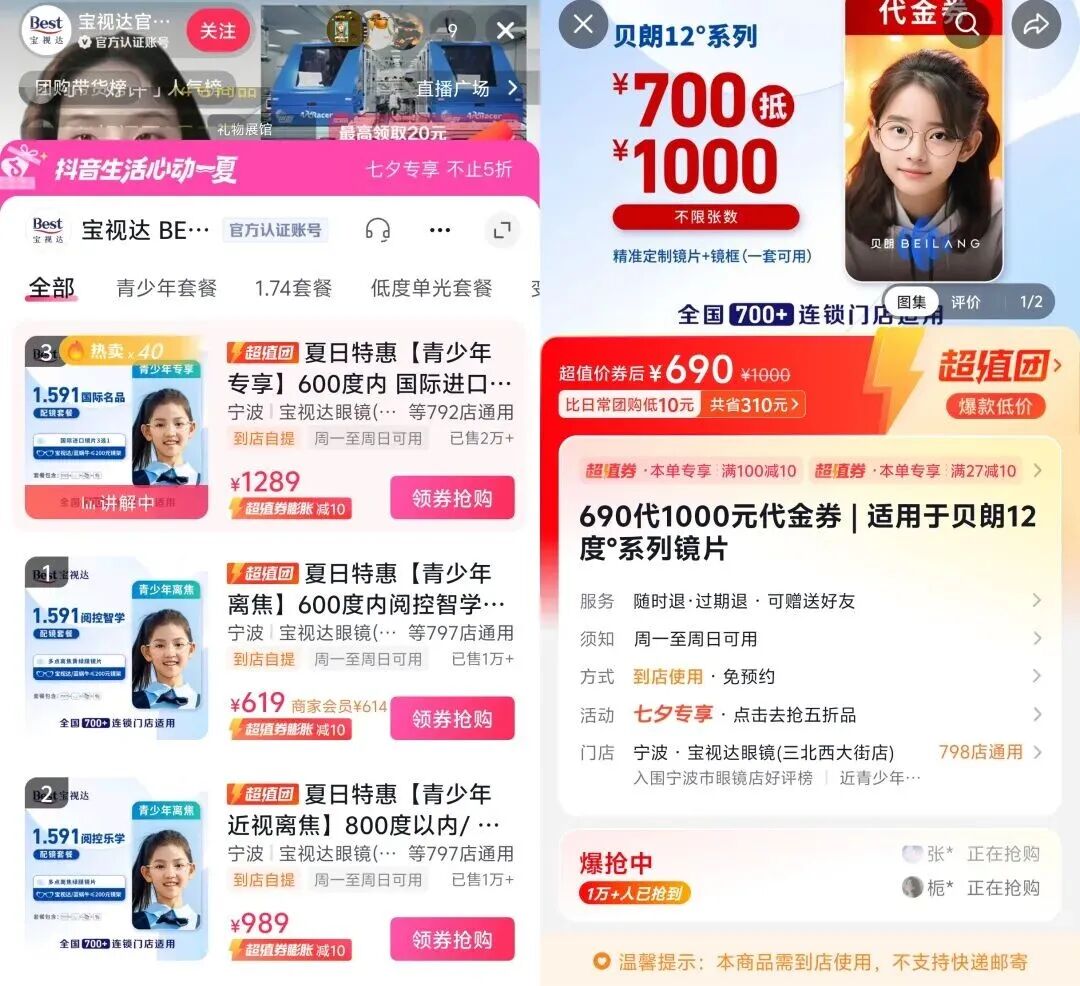 宝视达全国800多家门店统一参与“超值券”膨胀活动,并配合短视频、直播等内容,在平台上获得了大量曝光。这不仅有效放大了品牌影响力,也促使用户在刷内容时就能了解离焦镜片、OK镜等新产品。