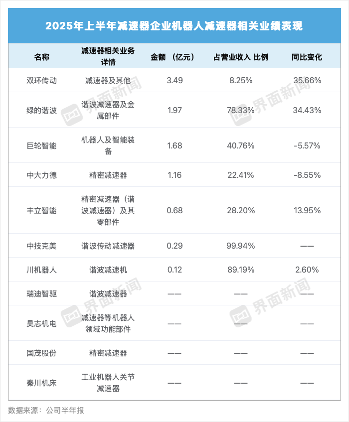 减速器相关上市公司相继交出了2025年中期成绩单,整体业绩较去年同期有所好转。