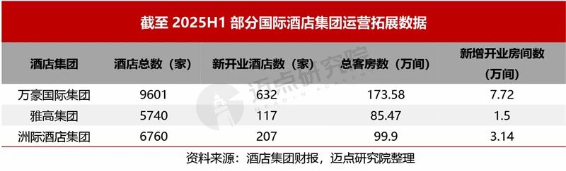 上半年,各大国际酒店集团持续拓店,以万豪、雅高和洲际三大集团为例,上半年新开业酒店数均超百家,其中万豪国际新增开业酒店超600家,新增客房数约7.72万间,预计2025年全年净房间增长将接近5%。与此同时,财报显示,2025年上半年,洲际酒店集团新增开业客房3.14万间(207家酒店),创历史新高,同比增长75%。