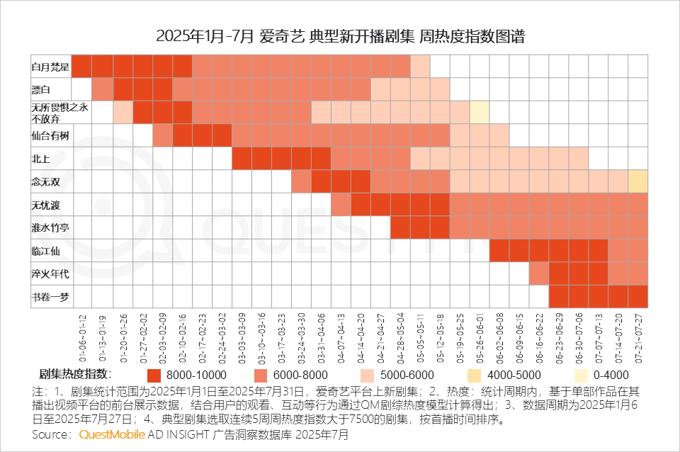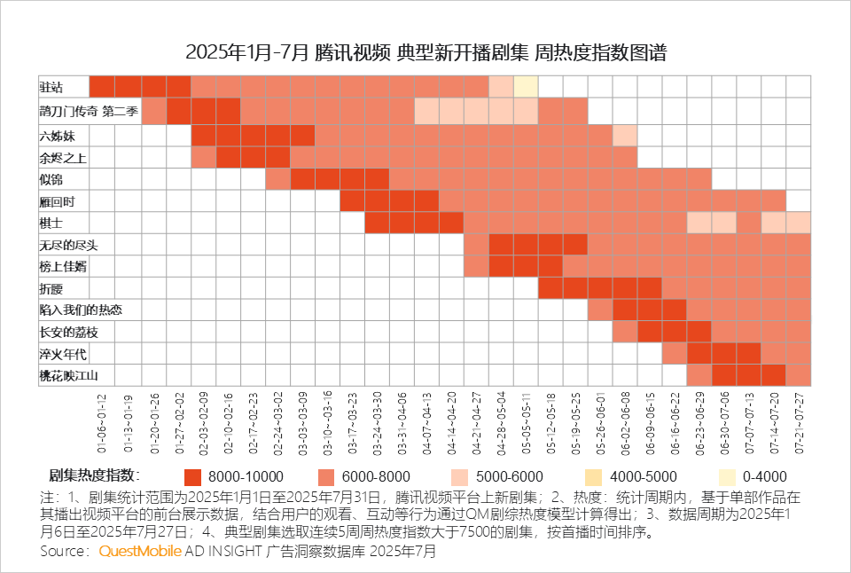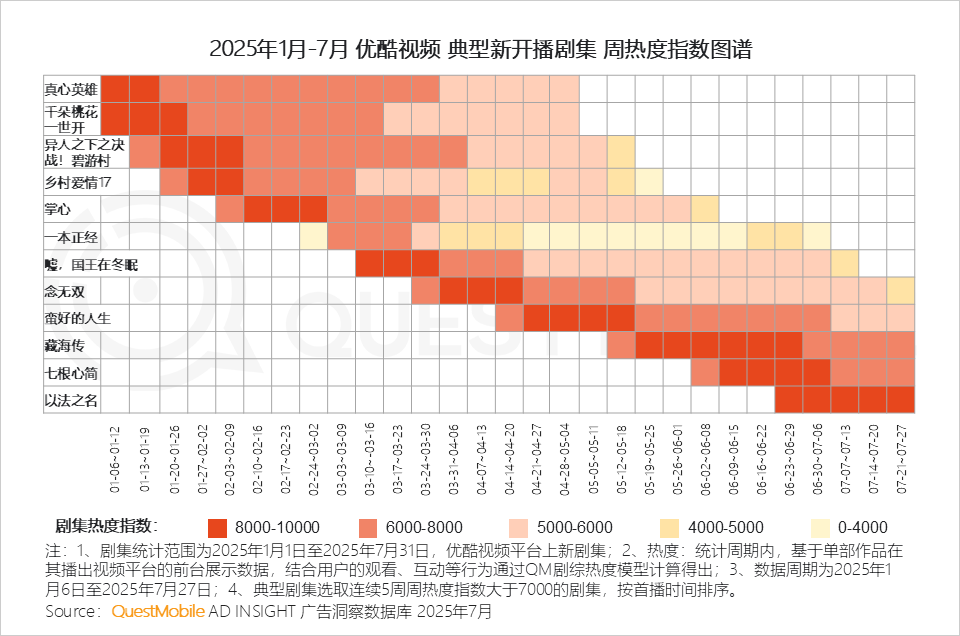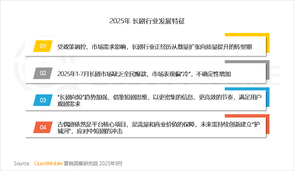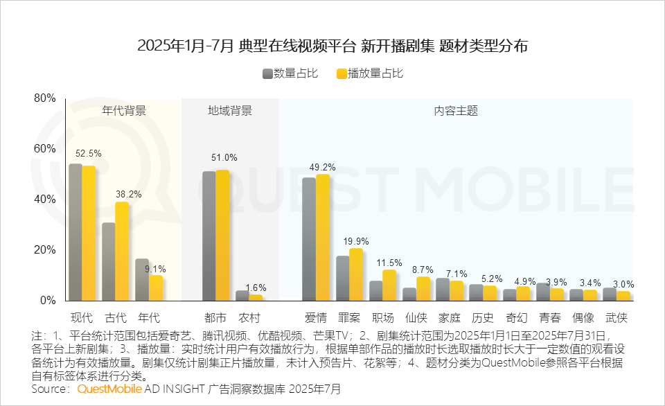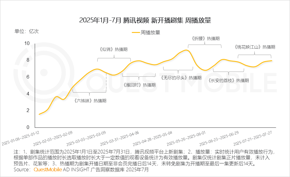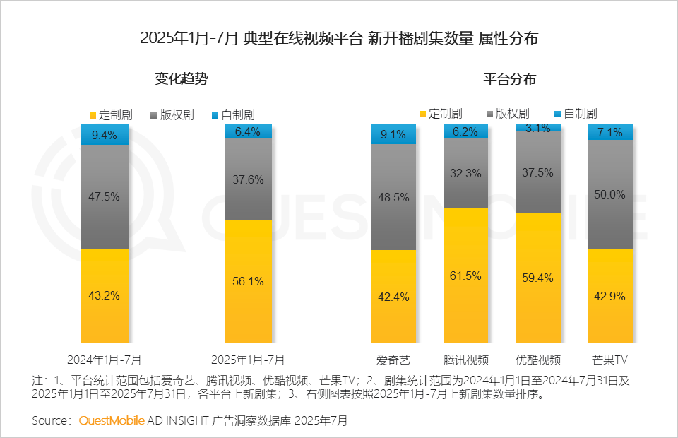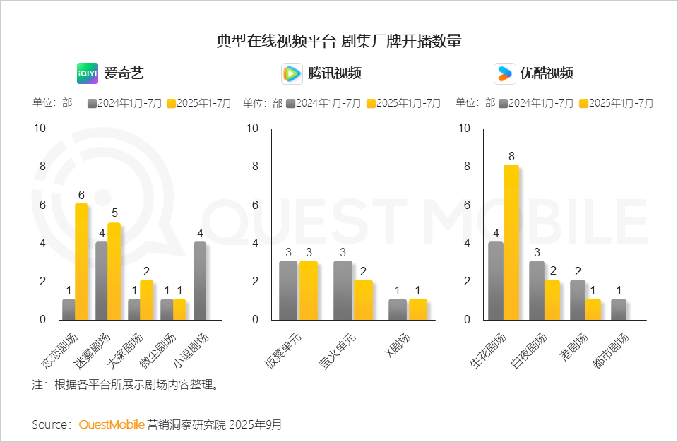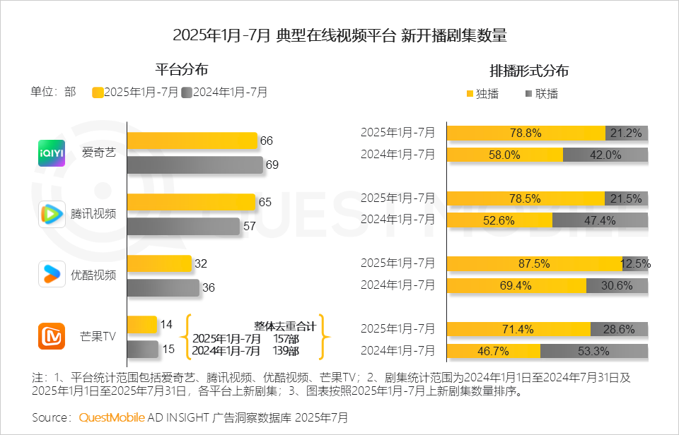 QuestMobile数据显示,2025年1月-7月,四大平台共上新157部剧集,同比增长12.9%。