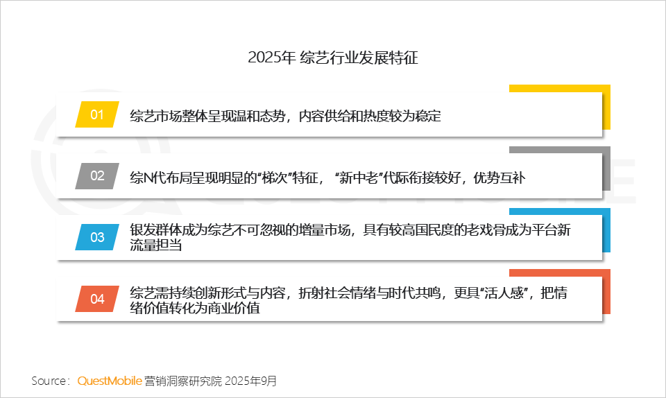 2、 为满足用户多元情感诉求,综艺需要焕新与创新,把情绪价值转化成商业价值