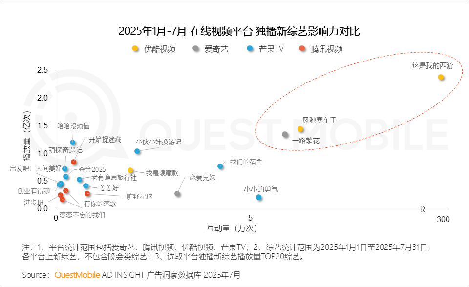 2.1 从新综艺效果看,优酷视频和爱奇艺都有作品表现不俗,如同样都有老戏骨参演的《这是我的西游》和《一路繁花》,芒果TV以数量占据绝对优势