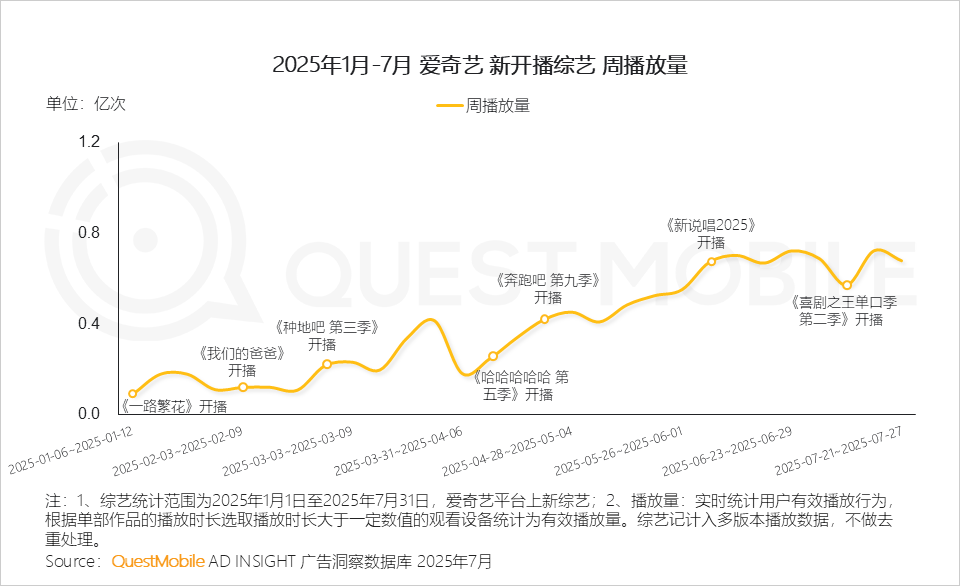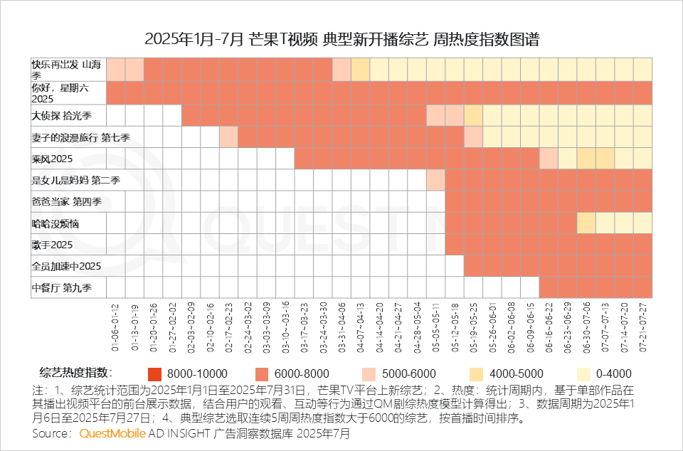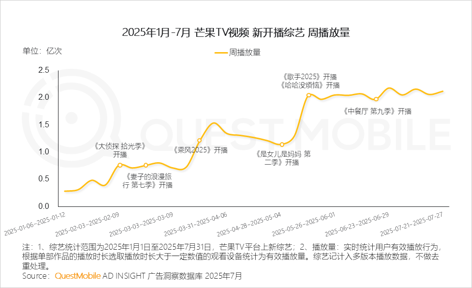 1.4 芒果TV平台吸睛综艺集中在综N代,如《大侦探 拾光季》《歌手2025》《中餐厅 第九季》等,此外新综艺《哈哈没烦恼》契合当下“解压经济学”,成为新晋流量担当