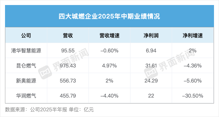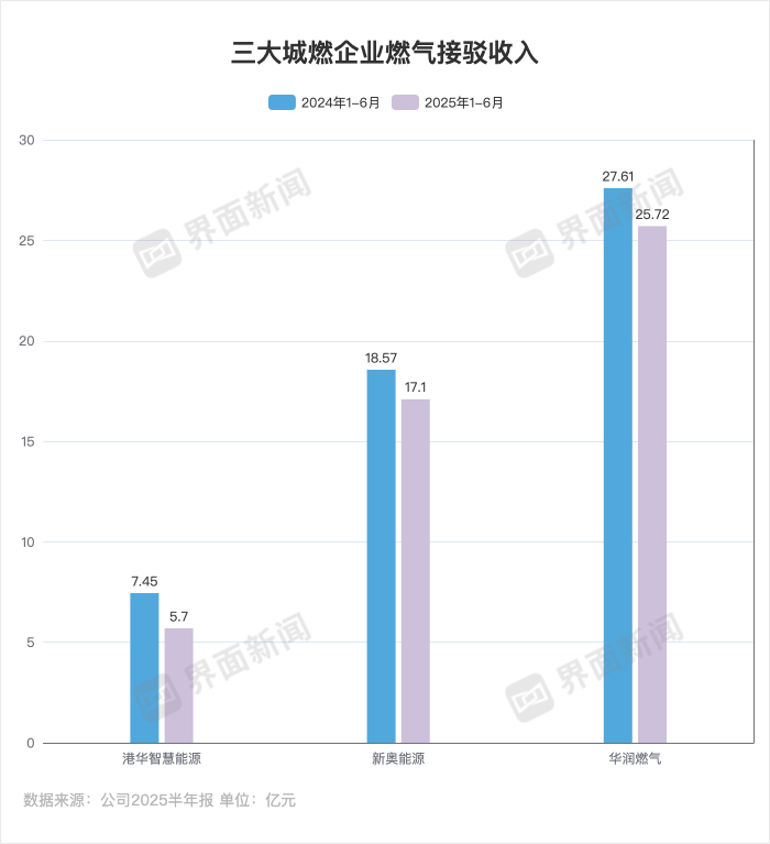 此外,据界面新闻梳理,有燃气接驳业务的港华智慧能源、新奥能源、华润燃气,上半年燃气接驳收入均出现同比下滑。