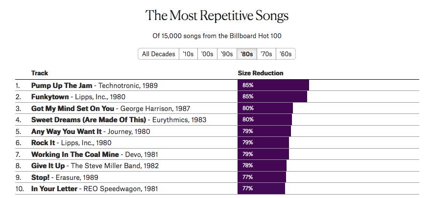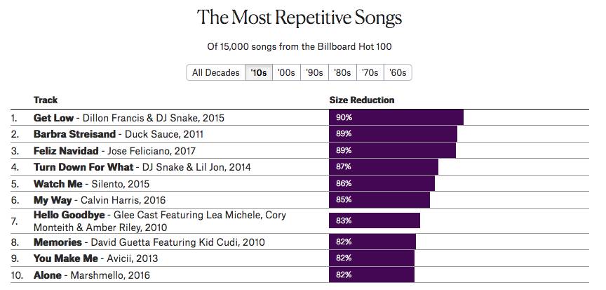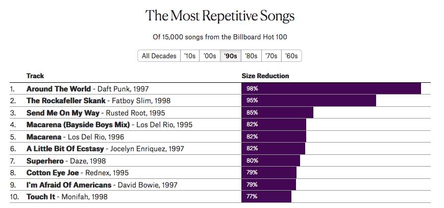 然而……还有比《Cheap Thrills》压缩度更高的,Daft Punk的《Around The World》,压缩度高达,98%!!!