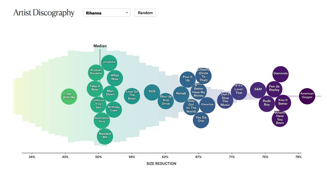Sia的《Cheap Thrills》,压缩度高达76%,远远超过平均水平。