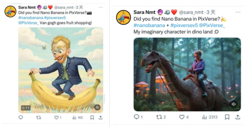此次,拍我AI成为国内首批嵌入Nano Banana(谷歌 Gemini 2.5 Flash Image)的AI视频生成的平台,让用户可以把喜欢的人物照片变成会动的手办人偶、与动物在大草原一起奔跑,甚至拍出富有故事情节的创意小短片。