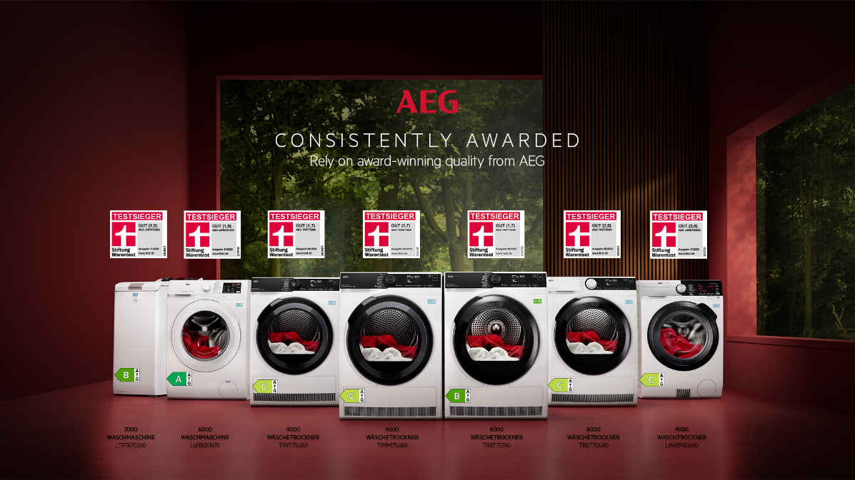AEG 在洗护领域持续创新。在过去 24 个月里,AEG 在洗衣机、洗干一体机与干衣机领域共七次赢得德国权威评测机构 Stiftung Warentest 的评测大奖*6,再次印证其将前沿设计与用户实际需求深度融合的承诺。最新捷报来自两大旗舰产品:8000 系列 AbsoluteCare® 干衣机 TR8T75789 与 9000 系列 AbsoluteCare® Plus TR9M7680 同时荣获最高评级。评测机构特别强调:“AEG 的干衣机是最棒的”,进一步巩固了 AEG 在高端干衣技术领域的领导地位。