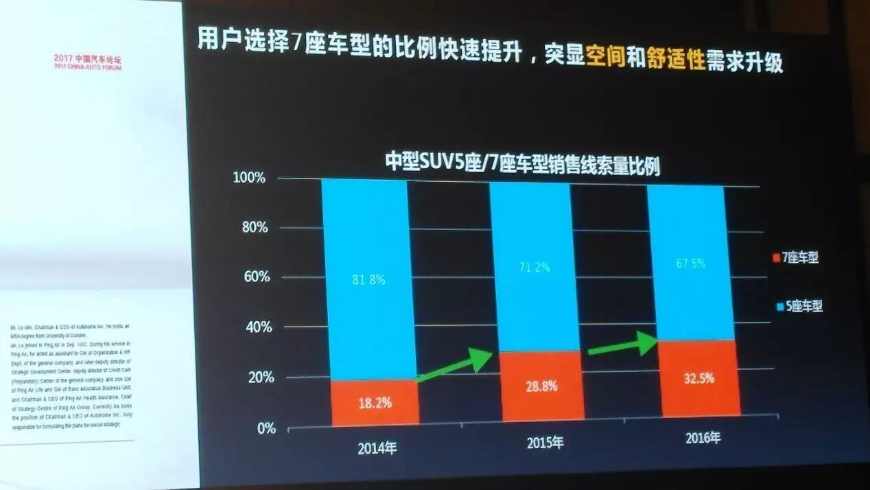 另外我们也看到一个趋势,就是现在用户选择7座SUV的势头还在往上走。所以大型化的趋势,还是很明显。我们的线索量里面,每年都在增加,今年也在增加。所以七座的SUV,是不是跟二胎政策有关不知道,反正在往上走。