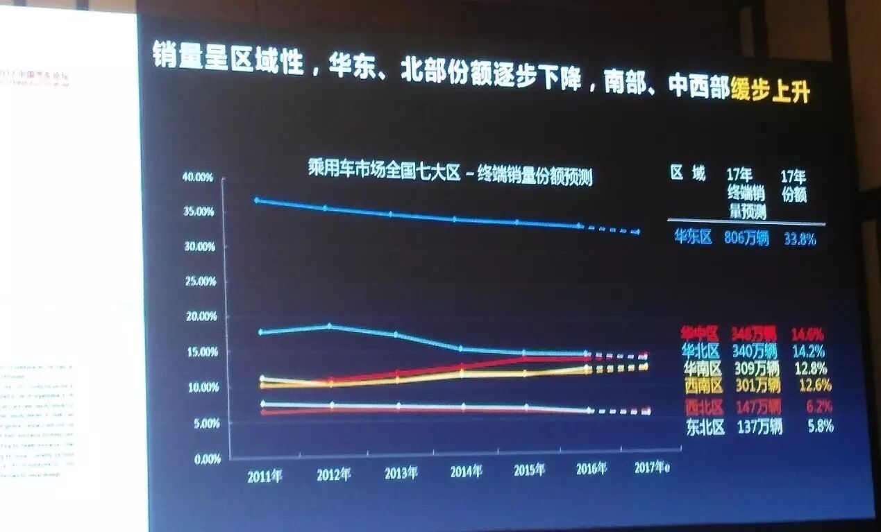 今年的SUV到了年底我们估计它的销量会超过轿车,SUV增长还是比较强劲。另外区域上也可以做一些判断,总体来讲感觉到华东,北方的一些地方增长在下降。但是南部、中西部地区增长趋势在上翘。这是我们的线索量,去年有8000万线索。这个里面可以看到三线城市的线索量在增加,三线城市是23%,增长是比较大的,也说明厂家应该再往下沉,往三四五线城市下沉。中国品牌里面我们看到MPV、SUV还是再往上走。但是可惜的是中国品牌的轿车是往下走的,这个可能还需要我们努力。