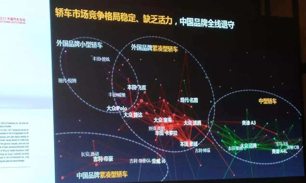 竞争我只是讲了云图,其实在我们的数据里面是可以看到所有车互为竞争对手。比如这两个是竞争对手,竞品,这款车它强势在哪里,或者这款车的弱项在哪里,因为都有用户的反馈上来,会非常地清楚。而且可以看到在营销手段上不同,导致的结果也会有所不同。所以竞争的分析,我刚刚只是展示了云图,实际上背后有很多数据。