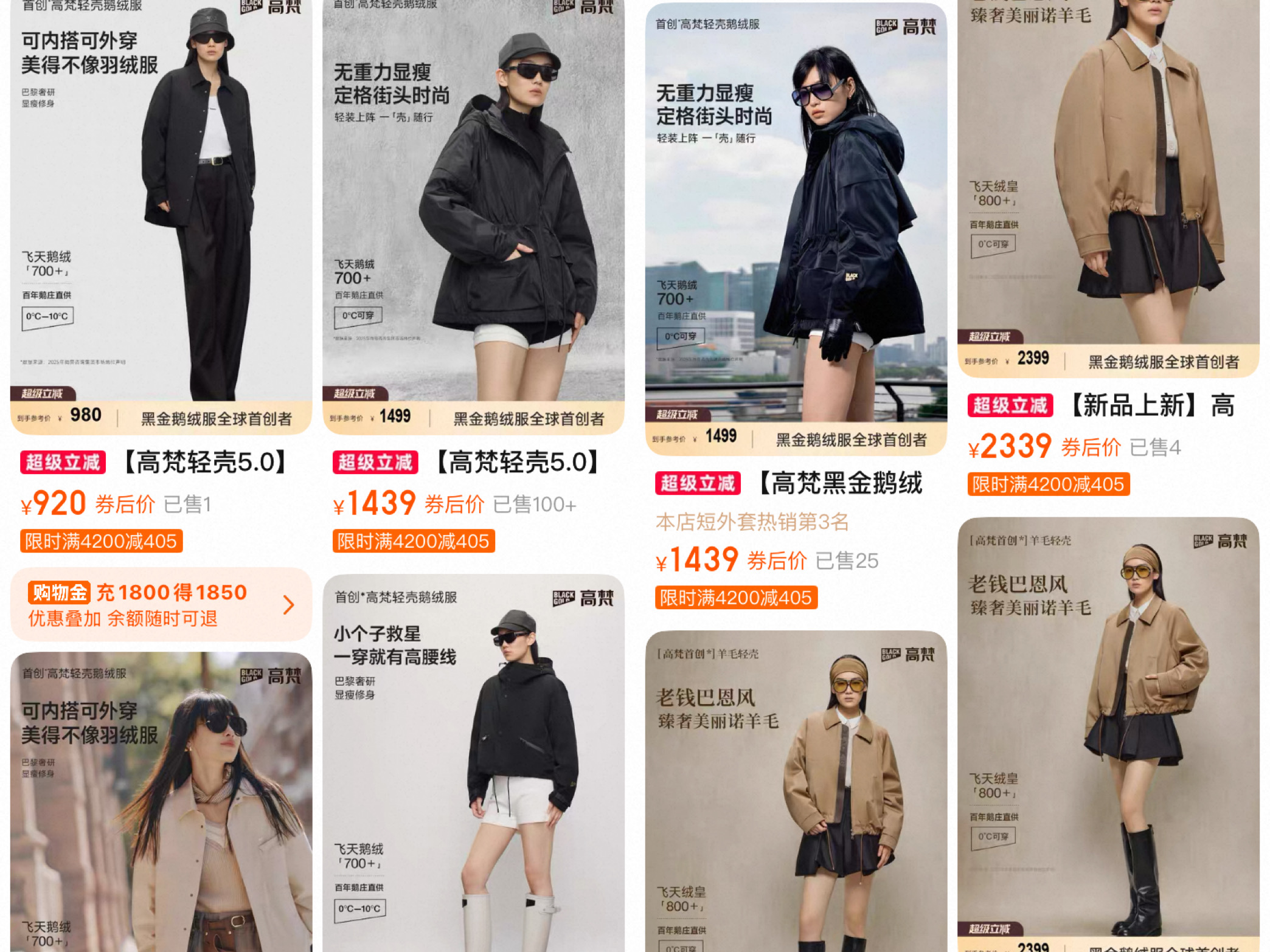 从目前的上新情况来看,高梵在价格上暂未有明显的向上突破,整体还是维持在2000元上下的区间,反而因非羽绒产品拓宽了价格带的下限。