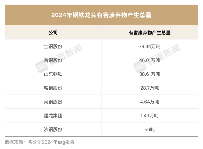 华菱钢铁在报告中披露了其危险废弃物处置量为23.59万吨。