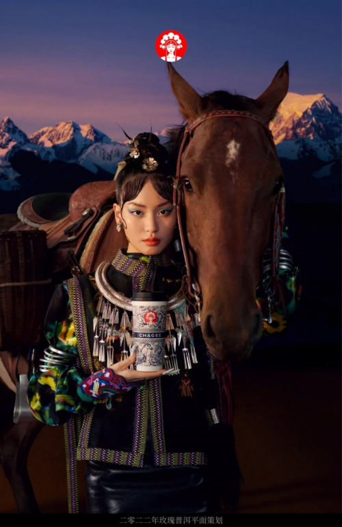 以云南雪山、茶马古道马帮、东巴文等符号,传递霸王茶姬茶的专业地位,用 “一花一叶,一口云南” 的叙事,将霸王茶姬从 “糖水” 认知中剥离,证明其 “云南茶正统” 的品牌血统。