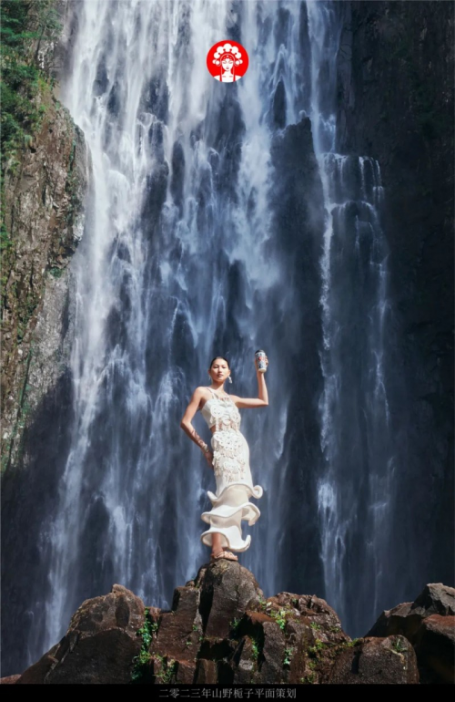 作为 0 香精茶的首发产品,容品牌借四川瀑布(天)、草木染(地)、彝族女孩(人)的符号组合,塑造 “天人合一” 的治愈感,将 “无添加健康” 的产品卖点,转化为消费者对 “雨后山谷” 的自然联想。