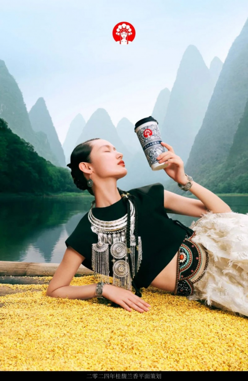 针对桂花香气的 “无形性”,以桂林山水、“呼吸” 动作、西南织锦为符号,让消费者 “隔着屏幕闻到桂香”,强化 “0 香精、真花味” 的认知。