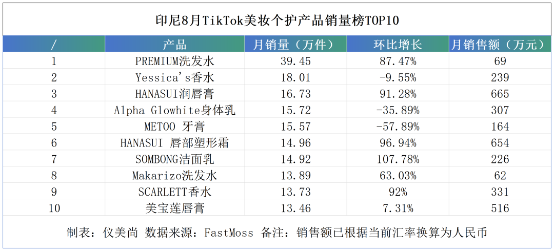 02 印尼:三款产品销售额超500万元,METOO牙膏大跌57.89%