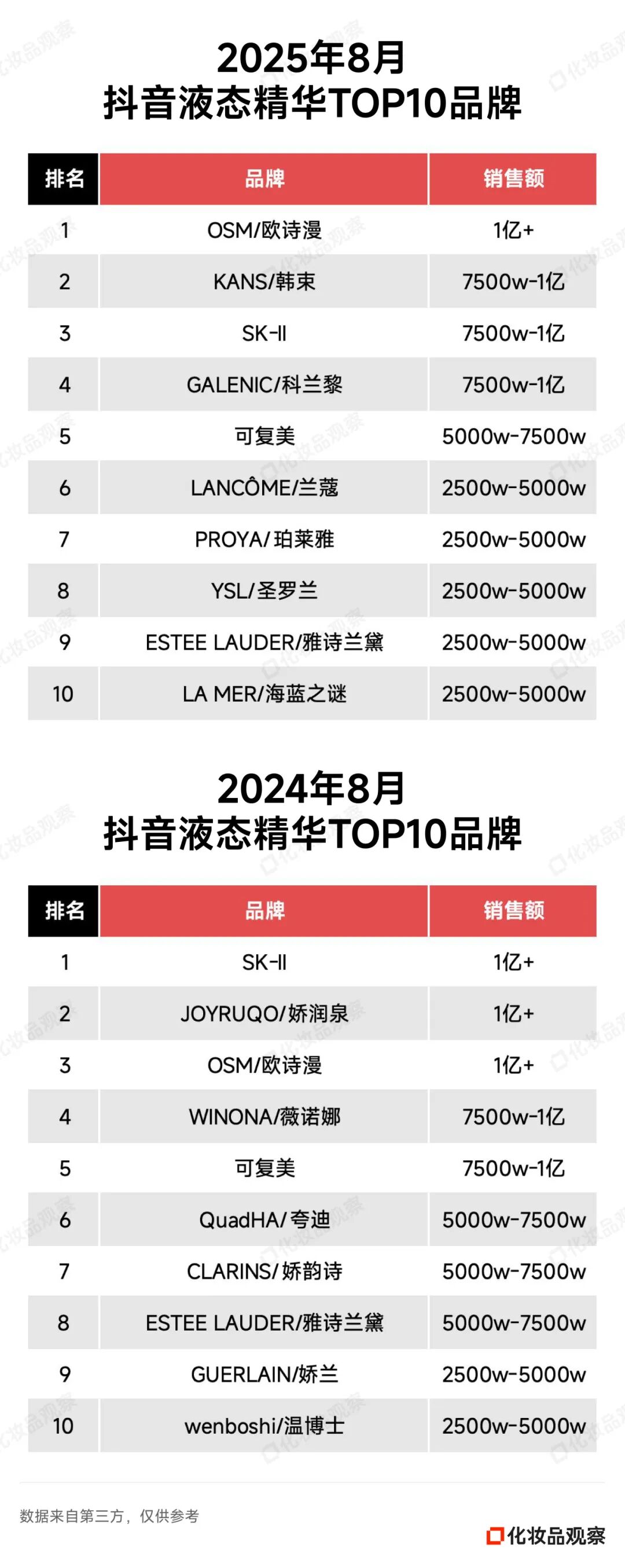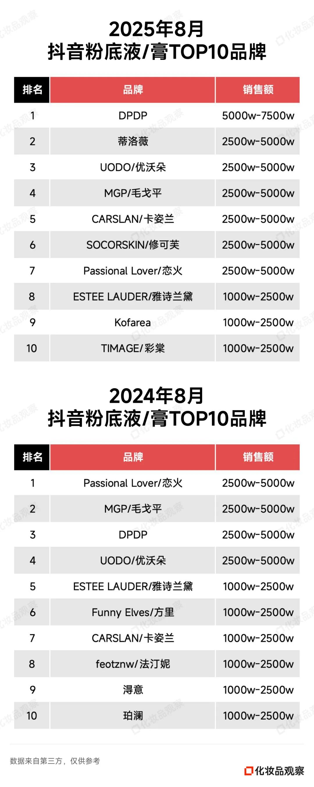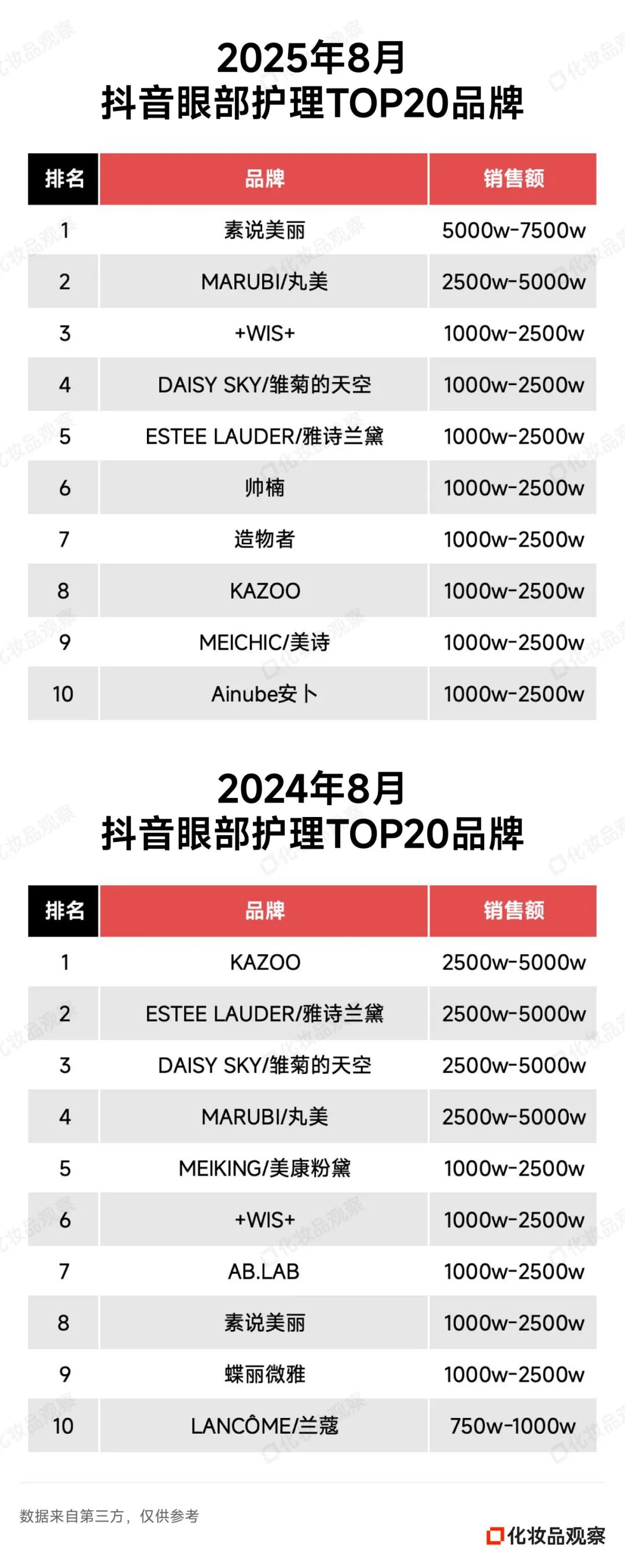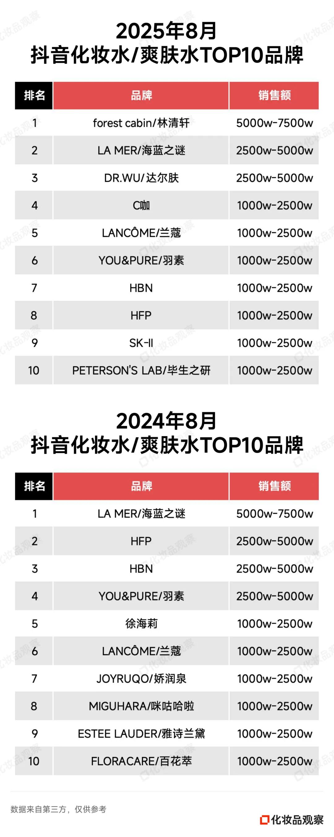 2025年8月&2024年8月 抖音美妆/美容护肤/彩妆香水美妆工具TOP20